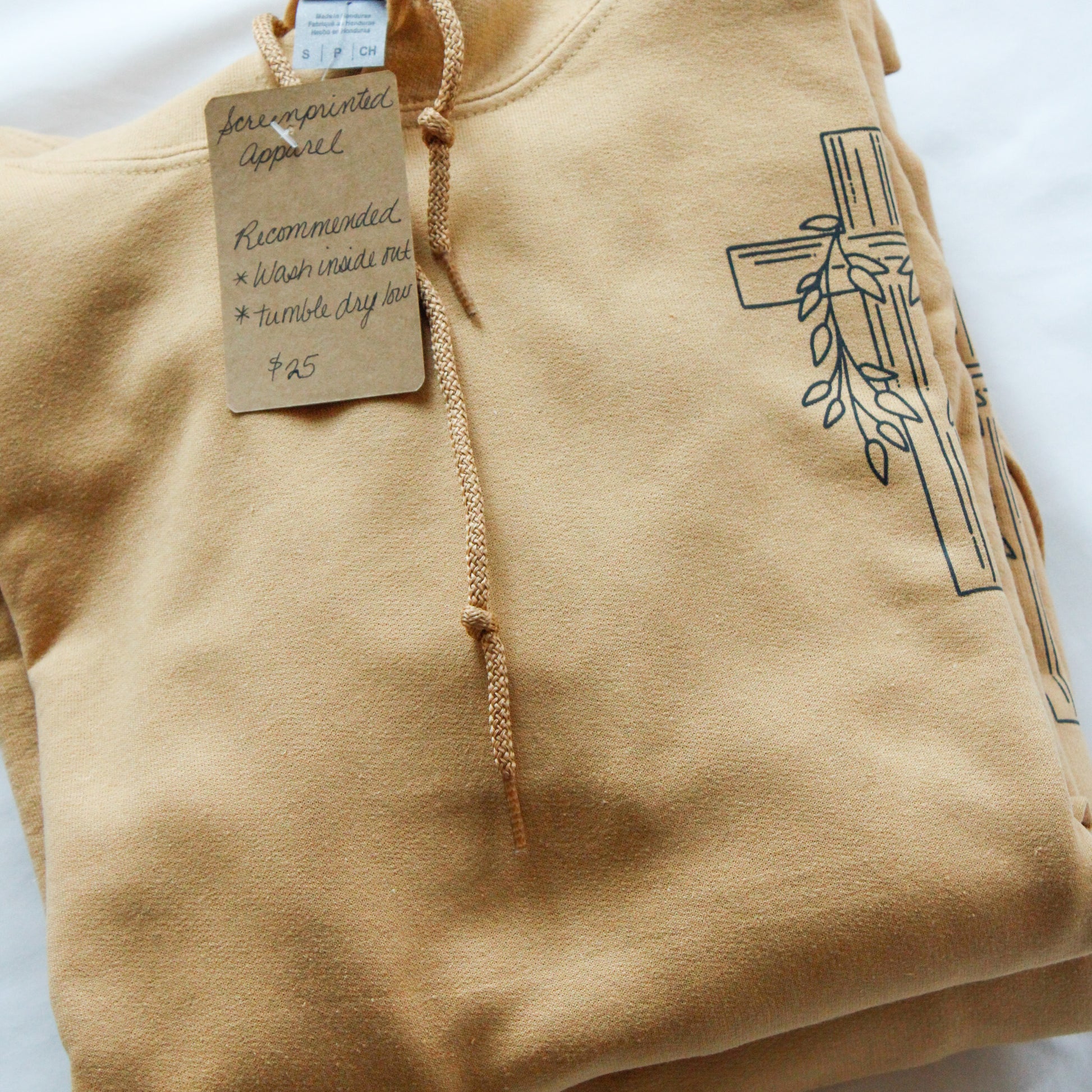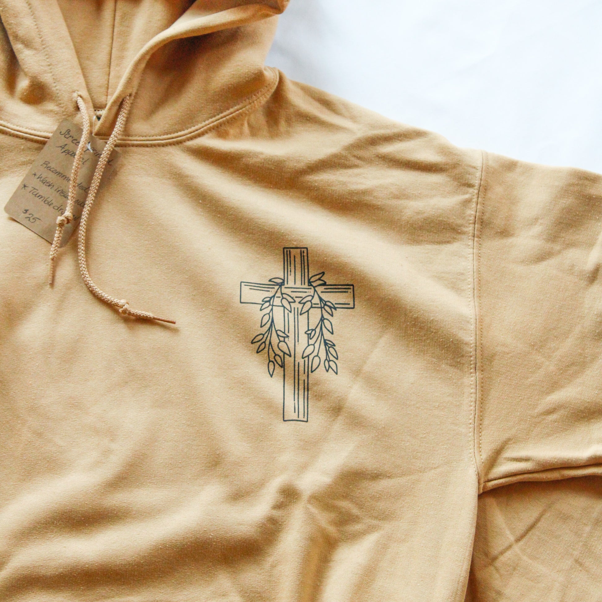 Abide in Me Hooded Sweatshirt with Pocket (Color: Old Gold)