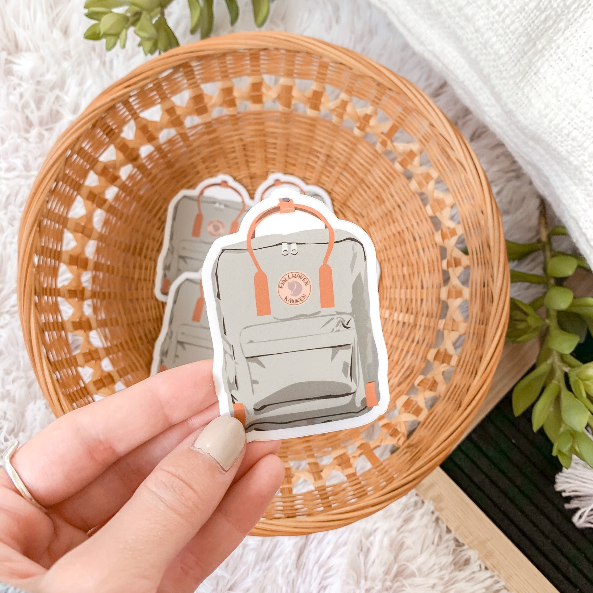 Illustrated backpack waterproof and weatherproof sticker that is perfect for laptops, water bottles, tumbler cups, notebooks, mirrors, cars, and more. They are dishwasher safe and removable/replaceable (for up to two or three times with minimum residue). Digitally illustrated in house and manufactured in the US. Approximately 3 inch long. Perfect for a teacher's gift, a fashion buff, or just a friend.