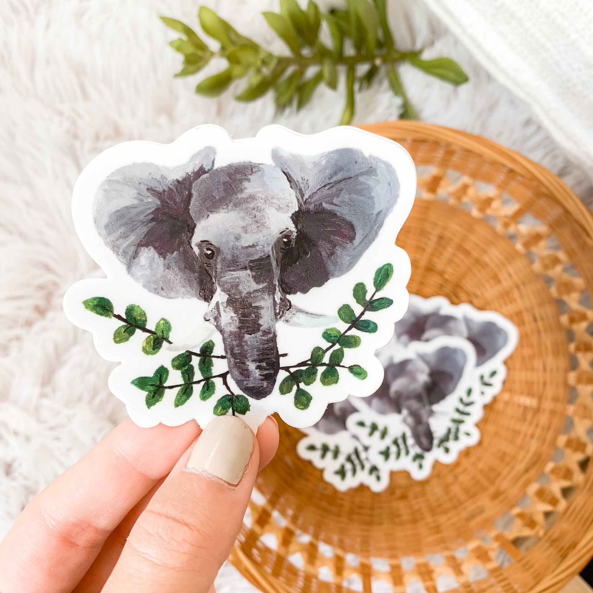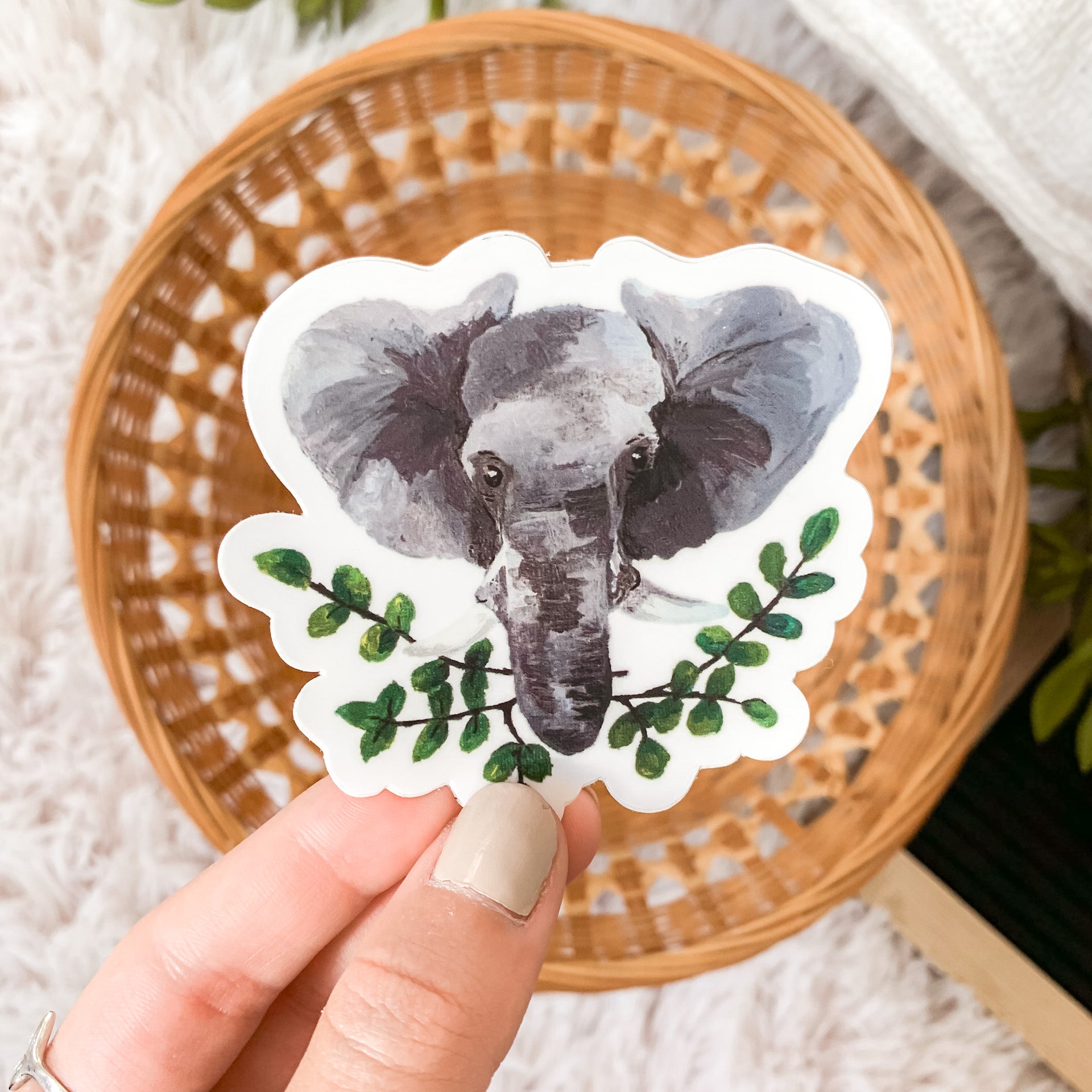 Spruce up a mirror, car window, water bottle, laptop, or more with these elephant stickers! The hand-painted elephant is so stark in color and high quality that you can see the detail of the brush strokes in the design. These stickers are waterproof, scratch-resistant, and weatherproof. They are dishwasher safe and removable/replaceable (for up to two times with minimum residue). They are the perfect car decal because they will survive the most aggressive car wash! They are perfect for your water bottle or your child's water bottle because they can go through your dishwasher every night without dissolving, peeling, or fading! This sticker measures about 3" high.