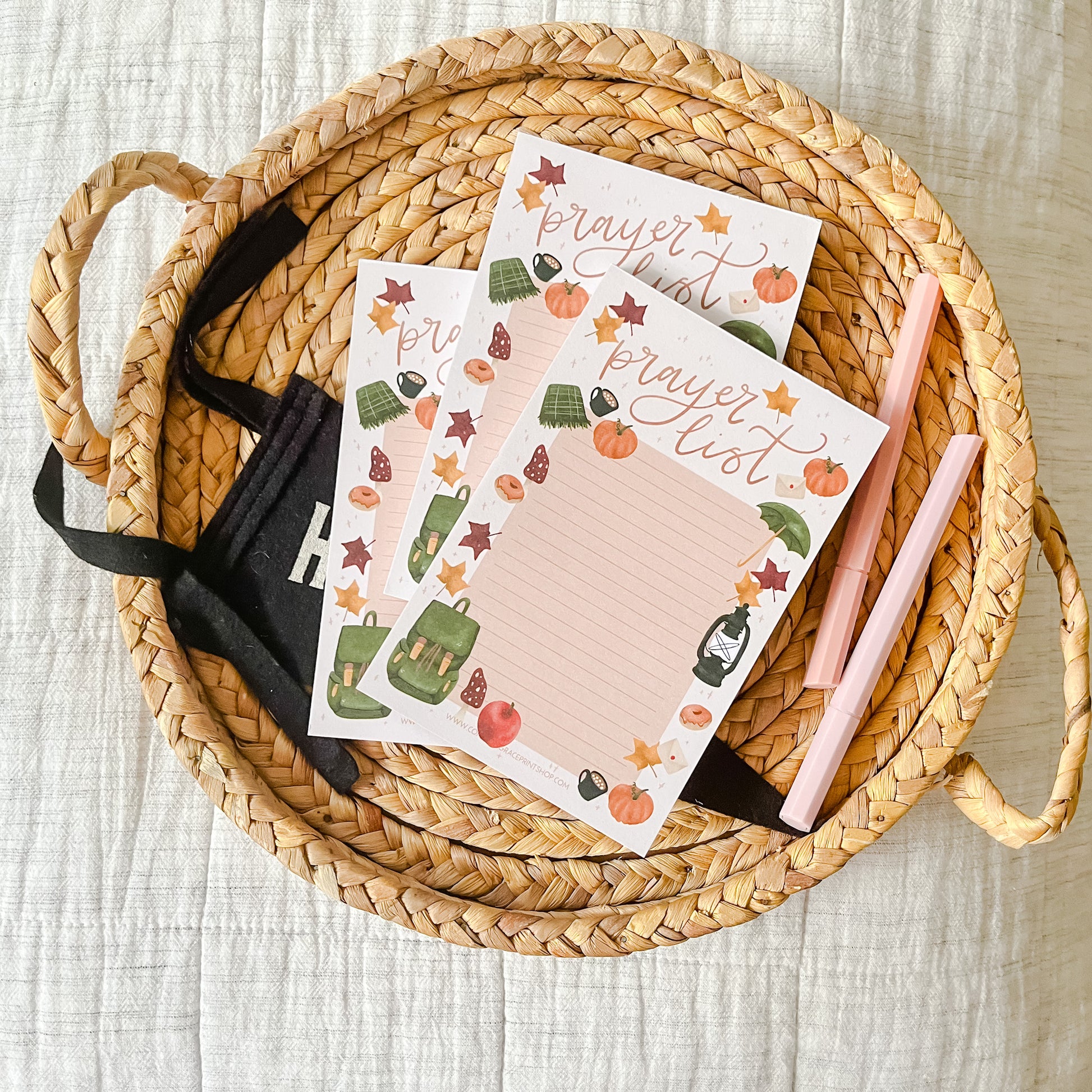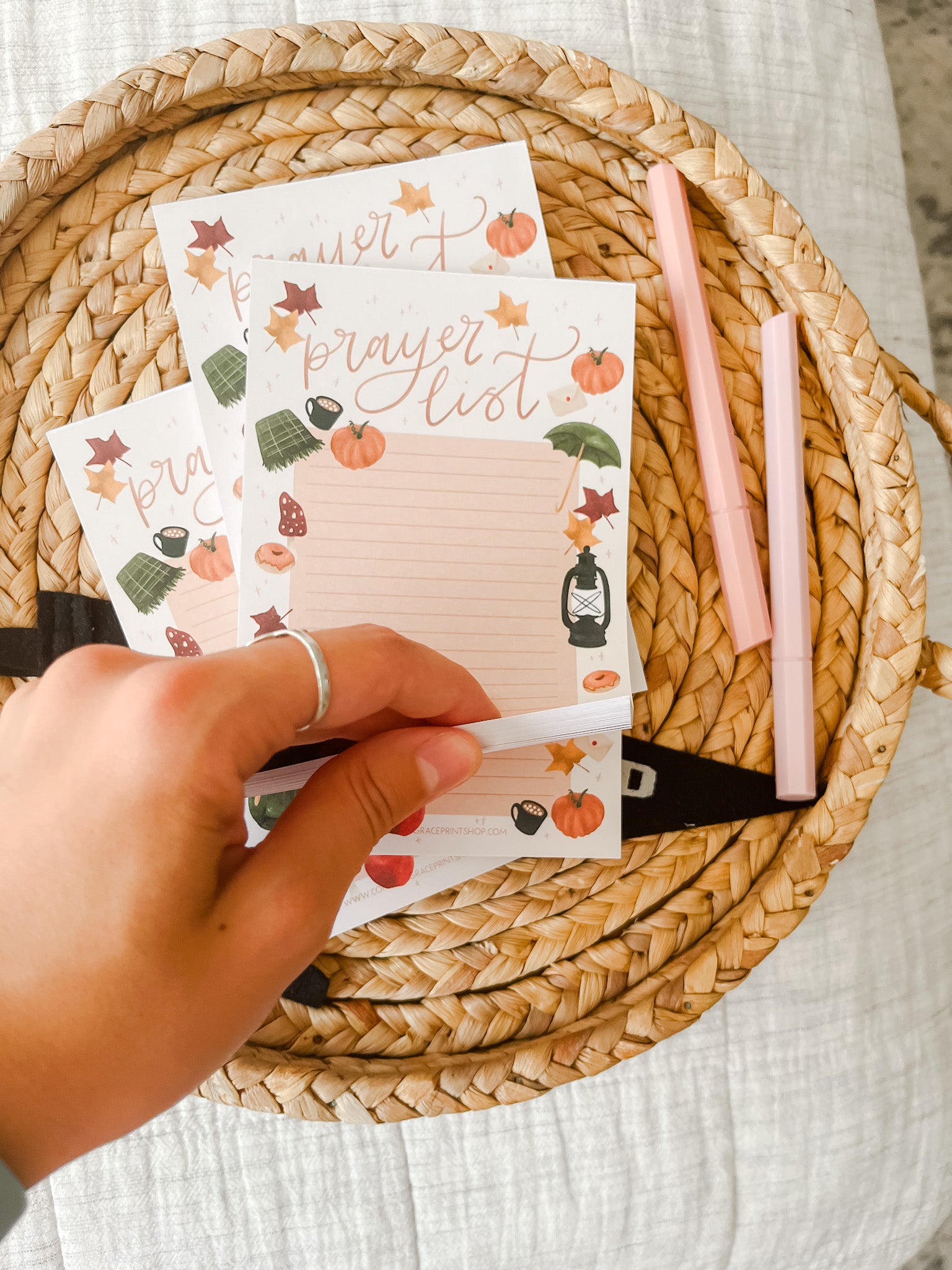 This beautiful Fall Prayer List Notepad features 50 pages of top-glued premium paper and beautiful fall-themed illustrations. Measuring 4" x 6", this prayer list is perfect for carrying in a pocket or purse, allowing for thoughtful spiritual reflection anywhere. Use the lines to write detailed prayer requests or a bulleted list of topics to pray for!