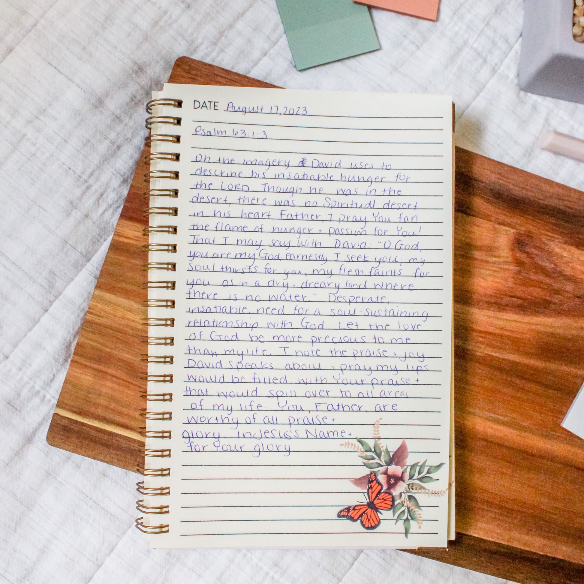 A beautiful handmade notebook to journal your prayers in one place. High quality covers with a heavy weight book board before the back cover combined with wire binding make a long-lasting journal. Illustrated by Kasey and printed & assembled in house.