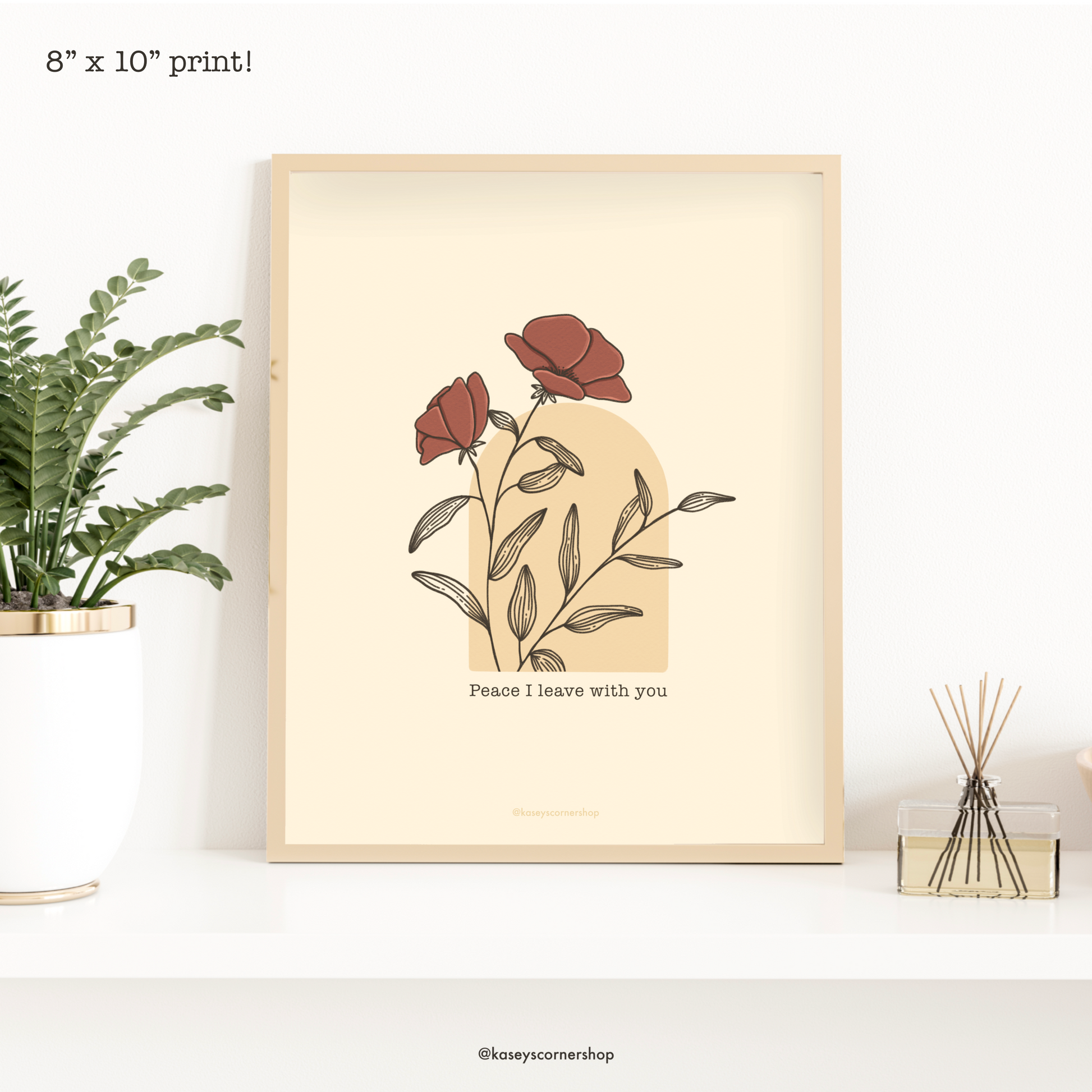 Peace I Leave with You Burgundy Floral Illustrated 8" x 10" Glossy Art Print