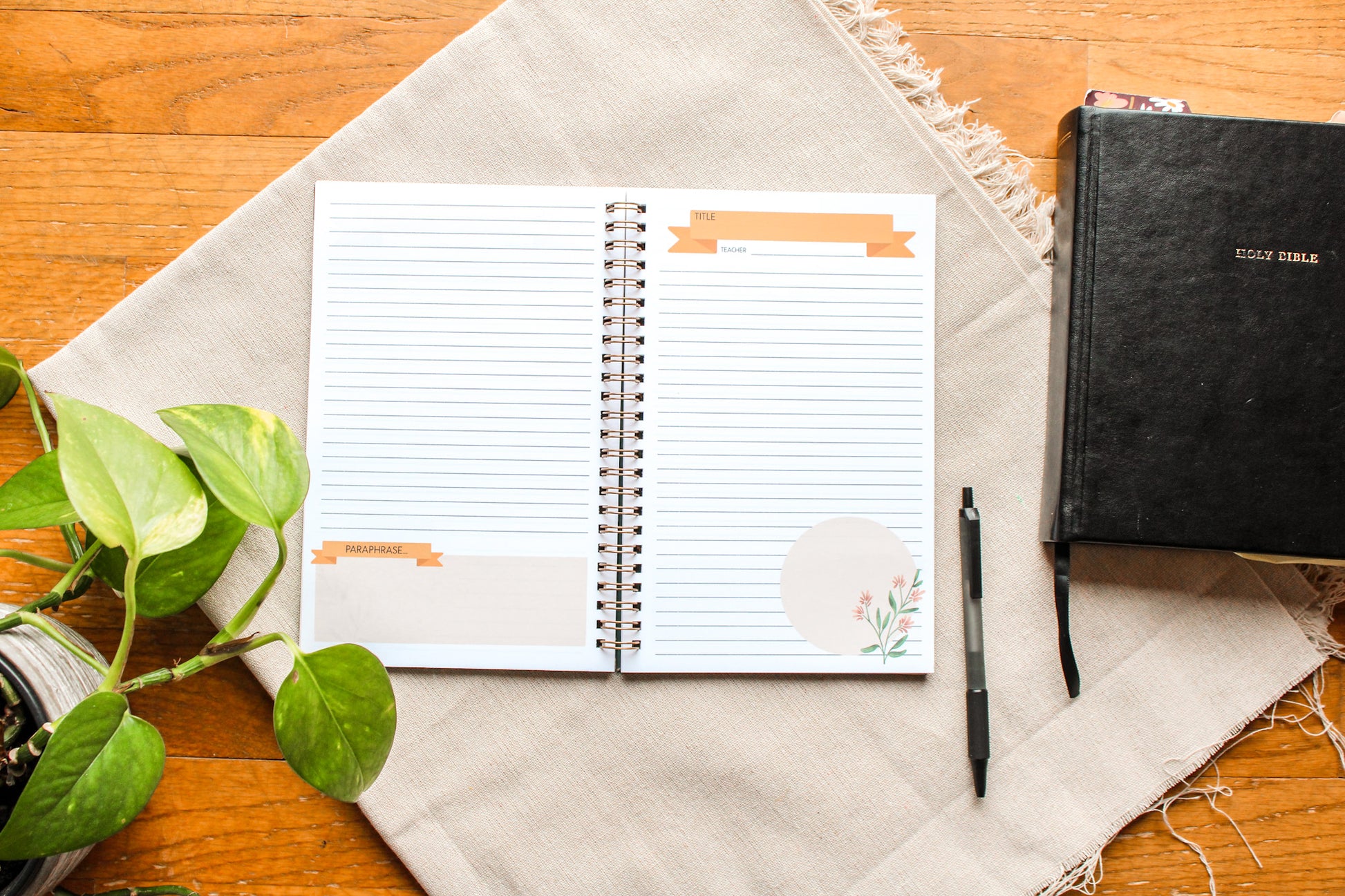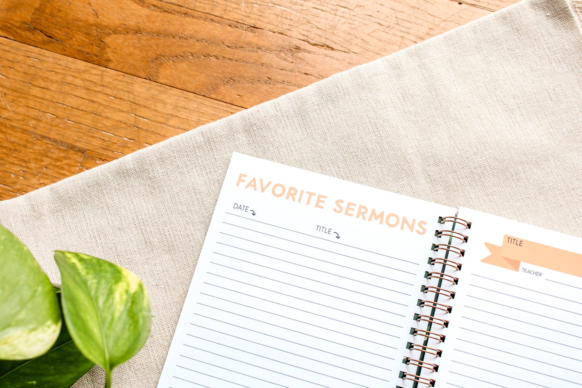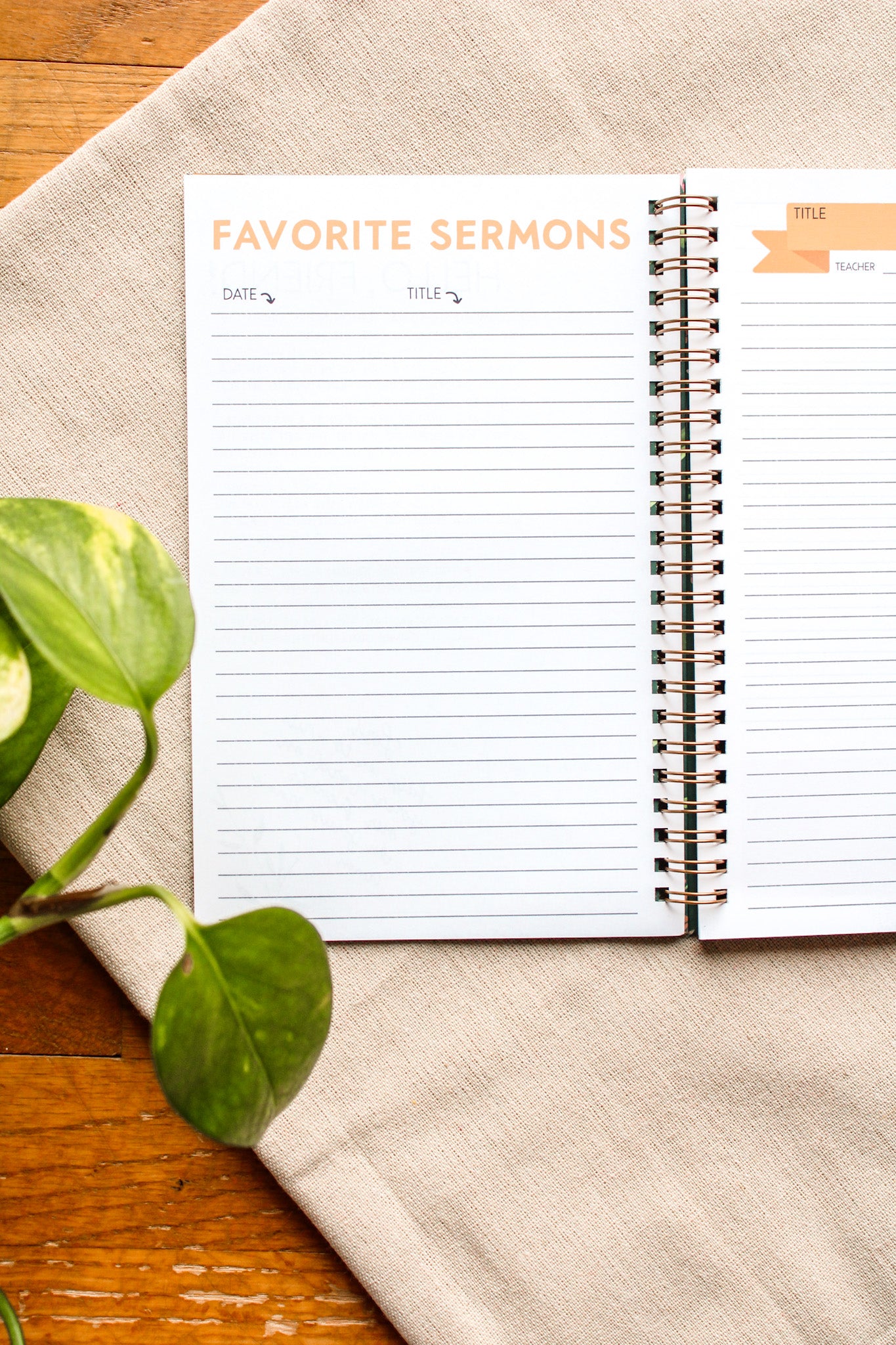 Includes an intro page where you can keep track of your favorite sermons in one spot for reference as well as spots to paraphrase each sermon to help your brain digest the study that day.