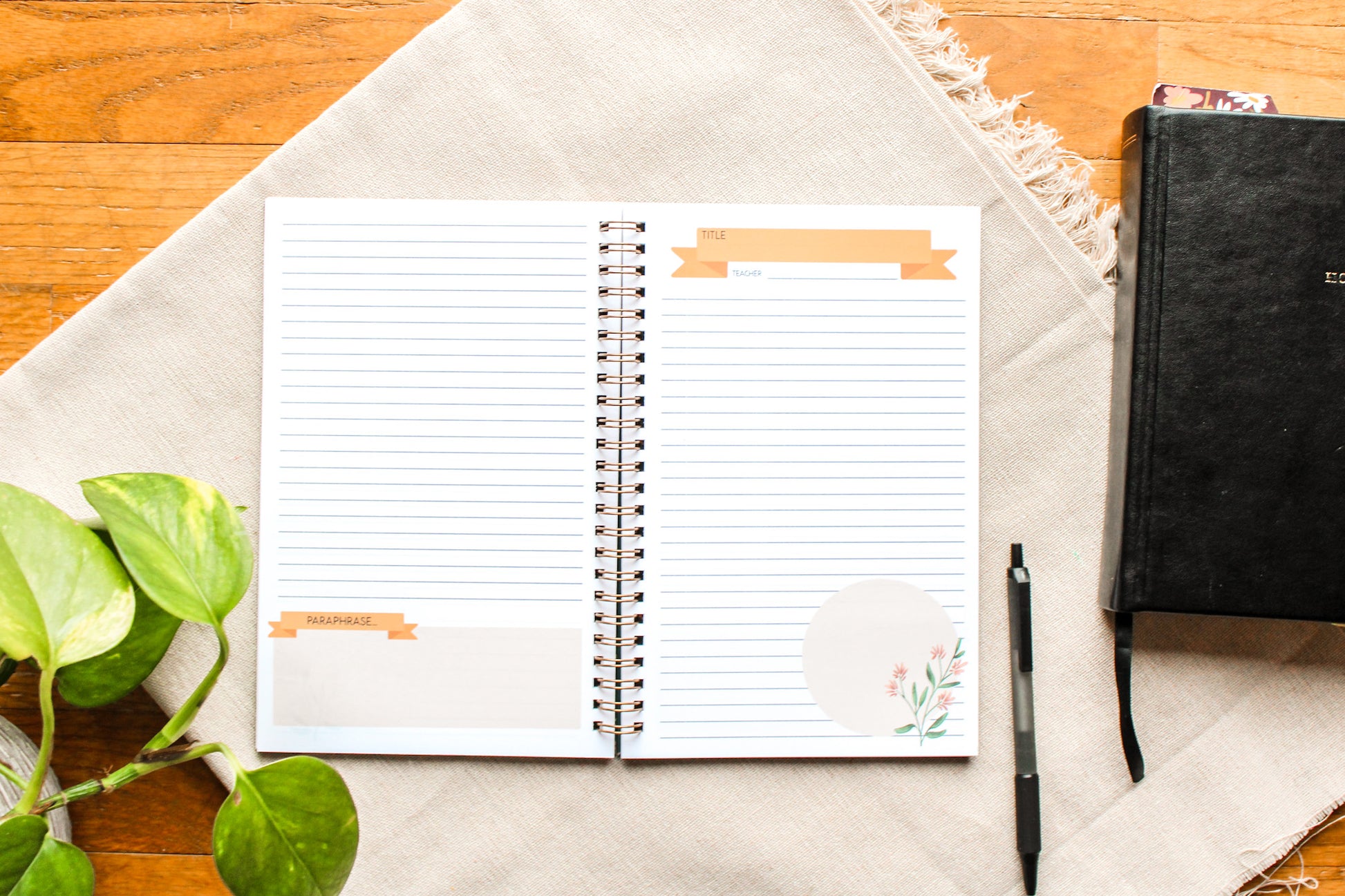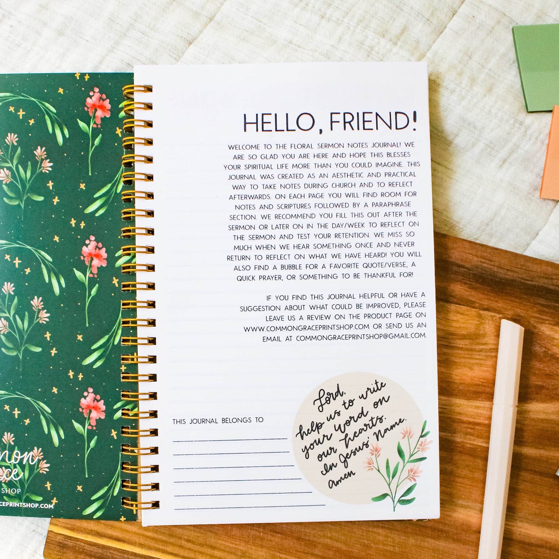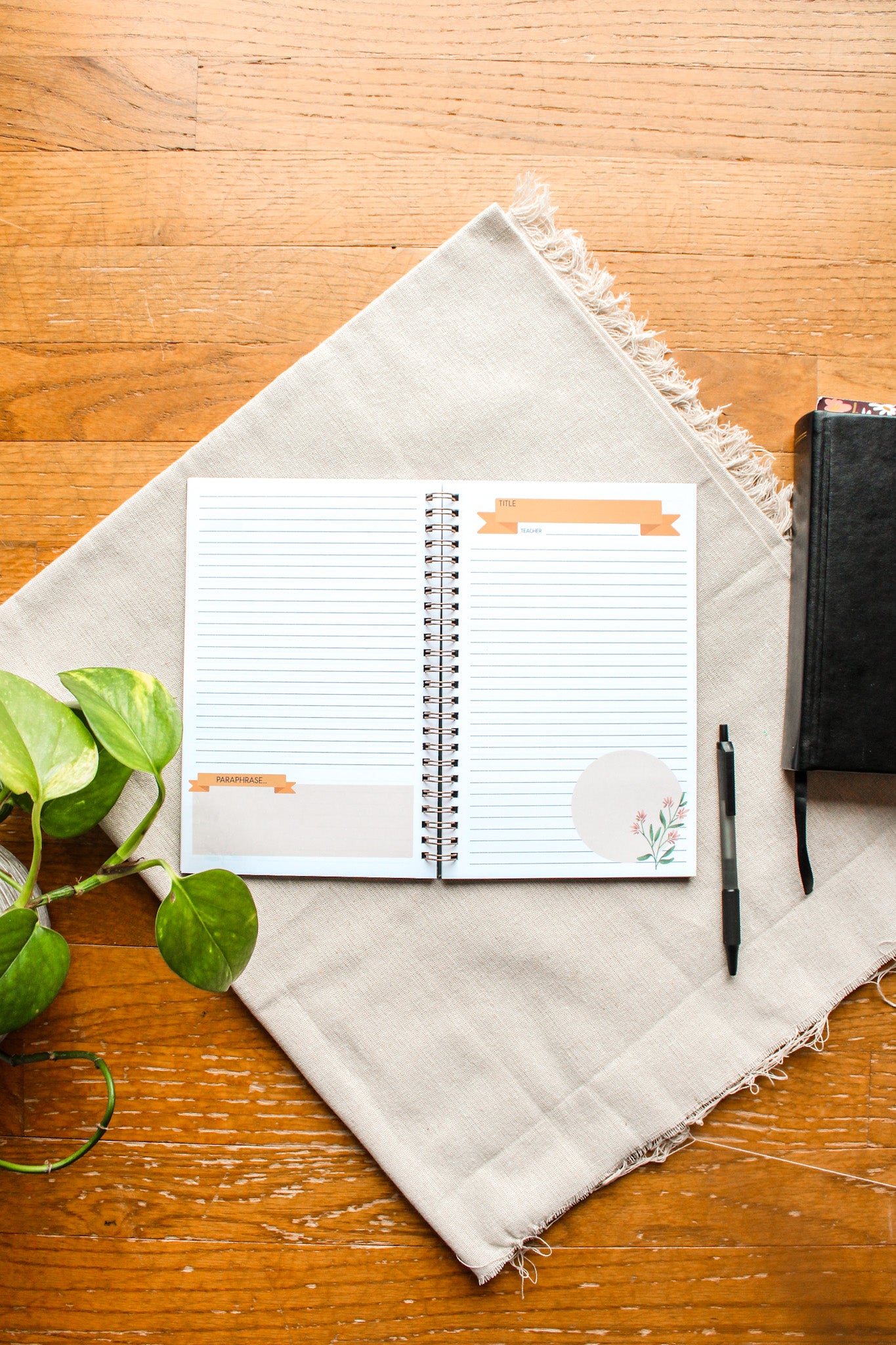 Includes an intro page where you can keep track of your favorite sermons in one spot for reference as well as spots to paraphrase each sermon to help your brain digest the study that day.