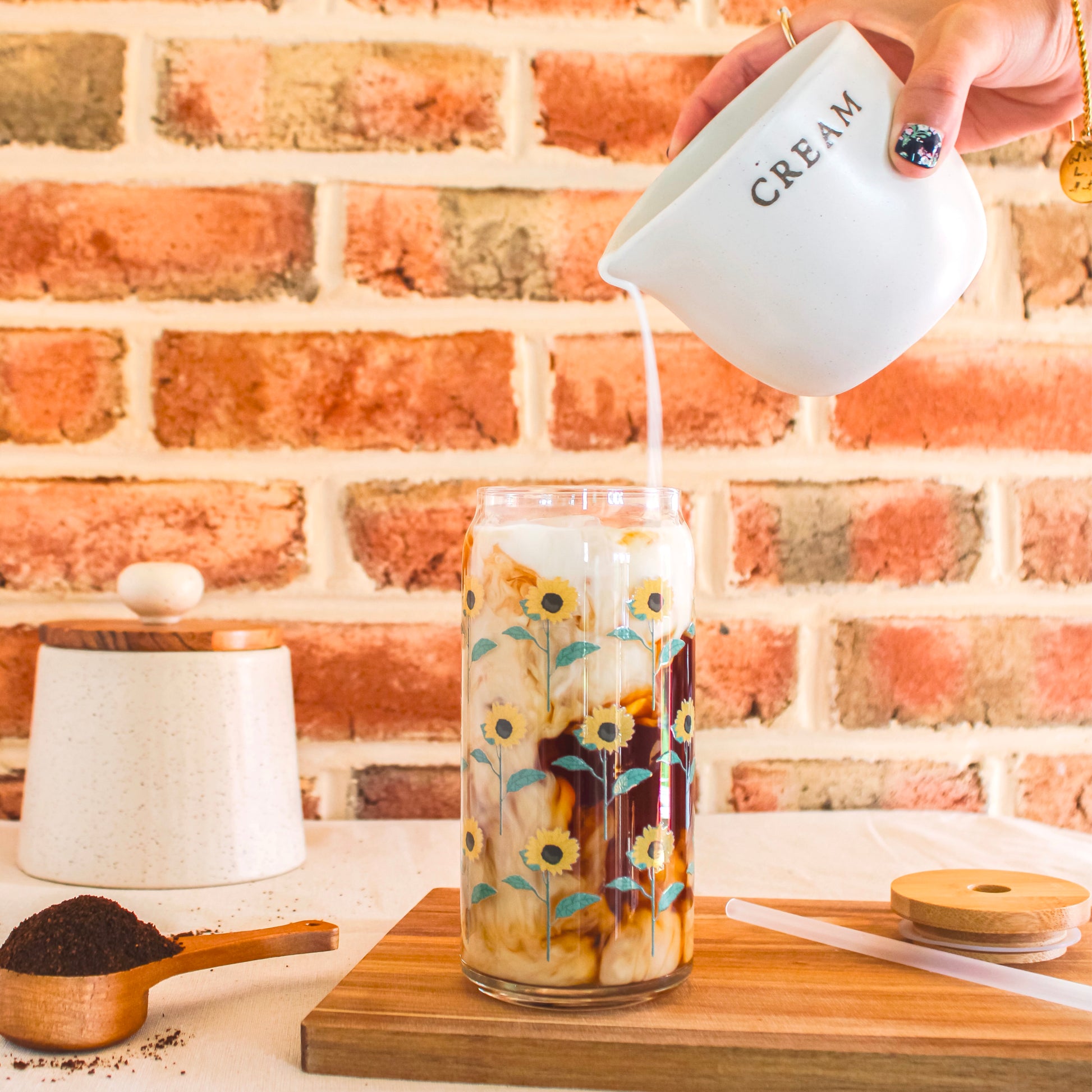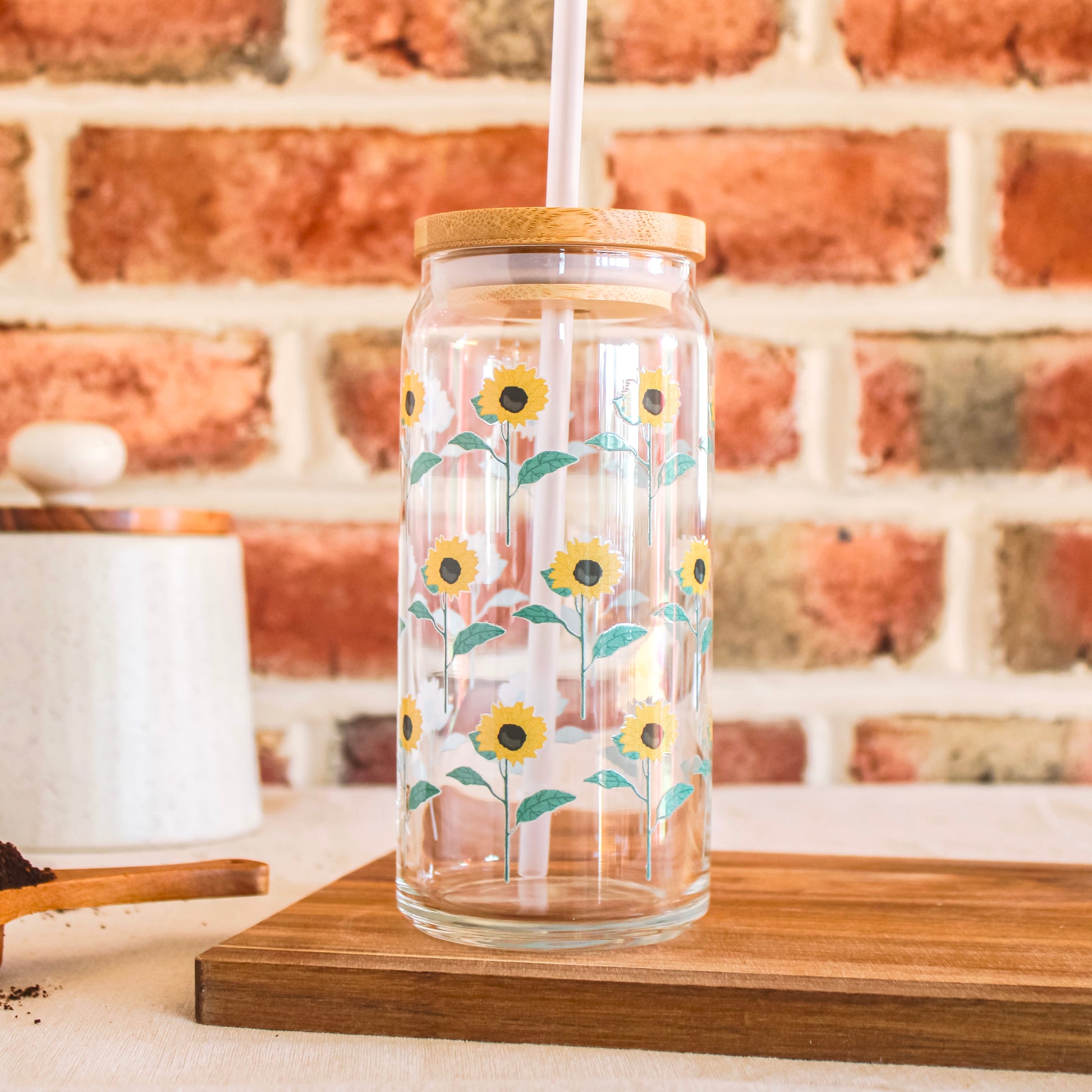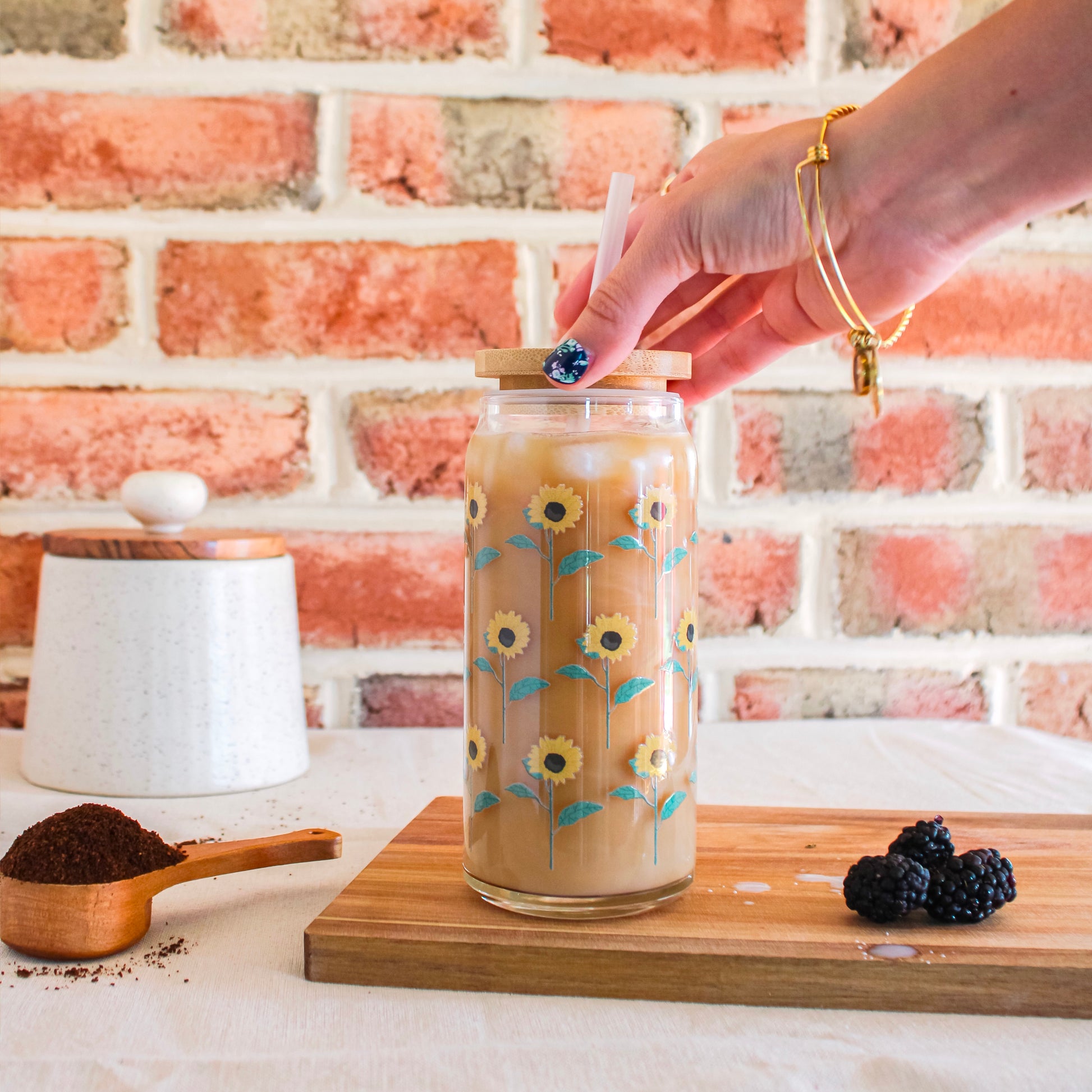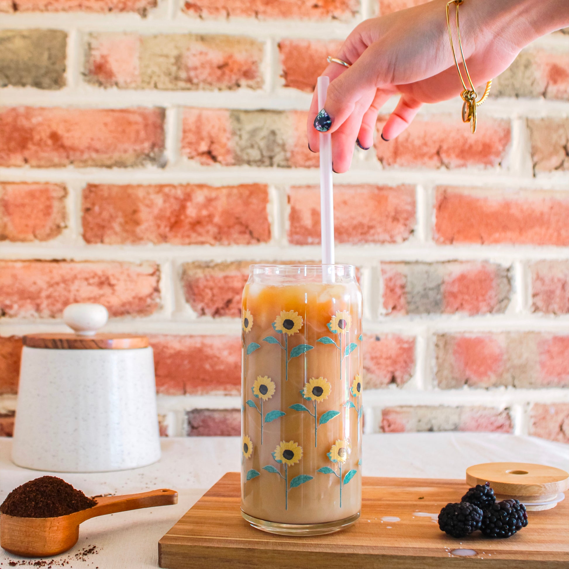 This glass was based on the fan favorite sunflower glass that we originally sold in the 16 oz size. This beautiful glass is in stores across the country! We are so excited to give it an upgrade!! Now 20 oz (instead of 16) and dishwasher safe! The "Sunflower" glass is perfect for your iced coffee, smoothies, and other drinks. The 20 ounce size makes for the perfect size, especially when you add ice to your drinks! Please note that our glass cans automatically come with a plastic straw. You can add a stainless steel, rose gold, heart-shaped straw for an additional $3 here. You must purchase the heart-shaped straw separately!