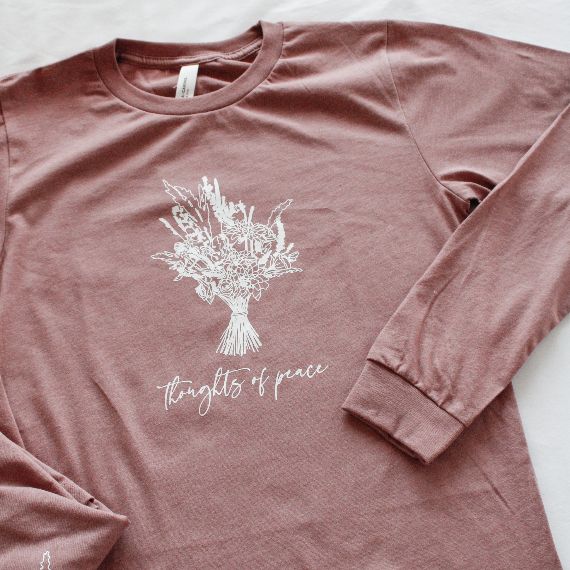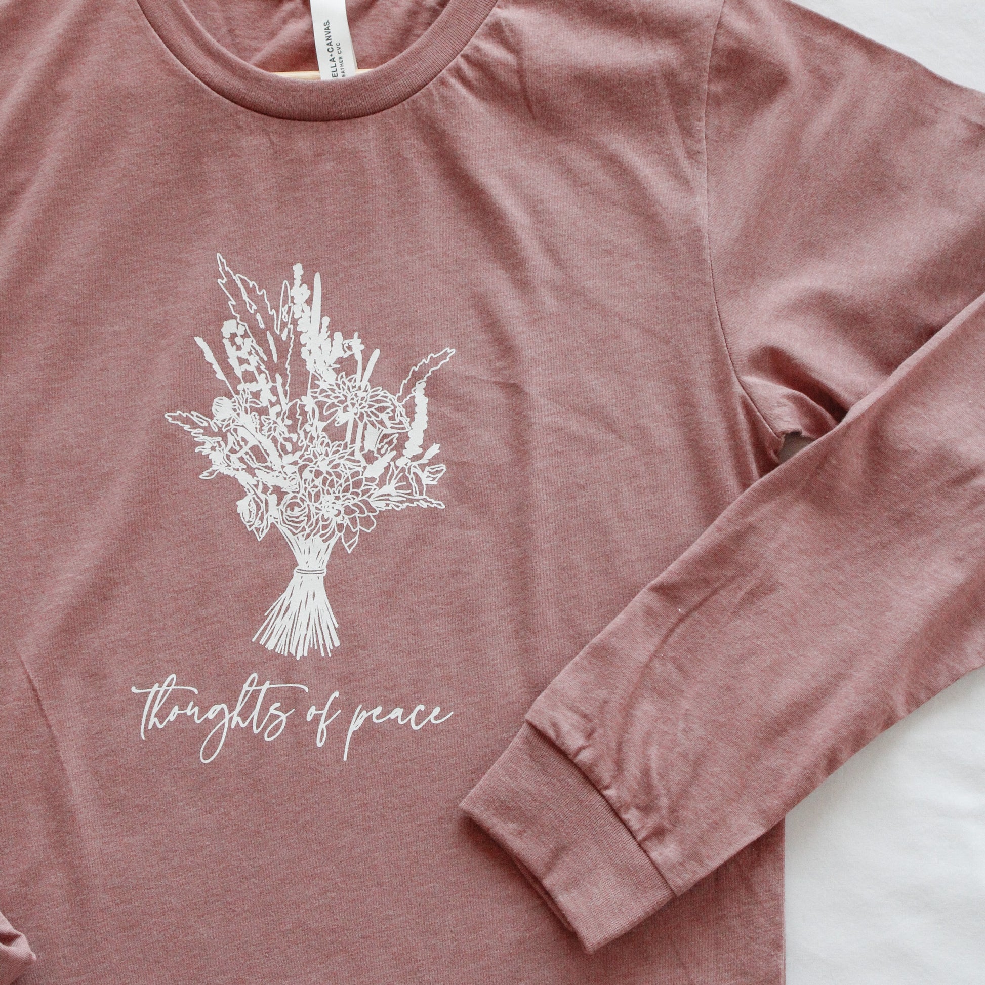 "Thoughts of Peace" Long-Sleeve T-Shirt (Color: Heathered Mauve)