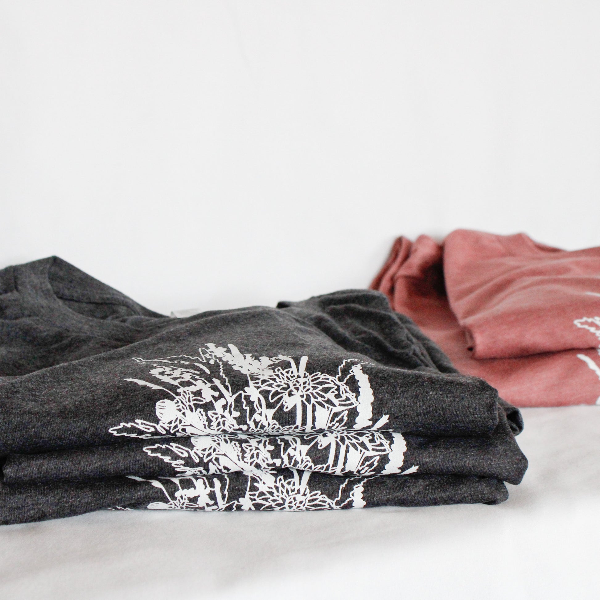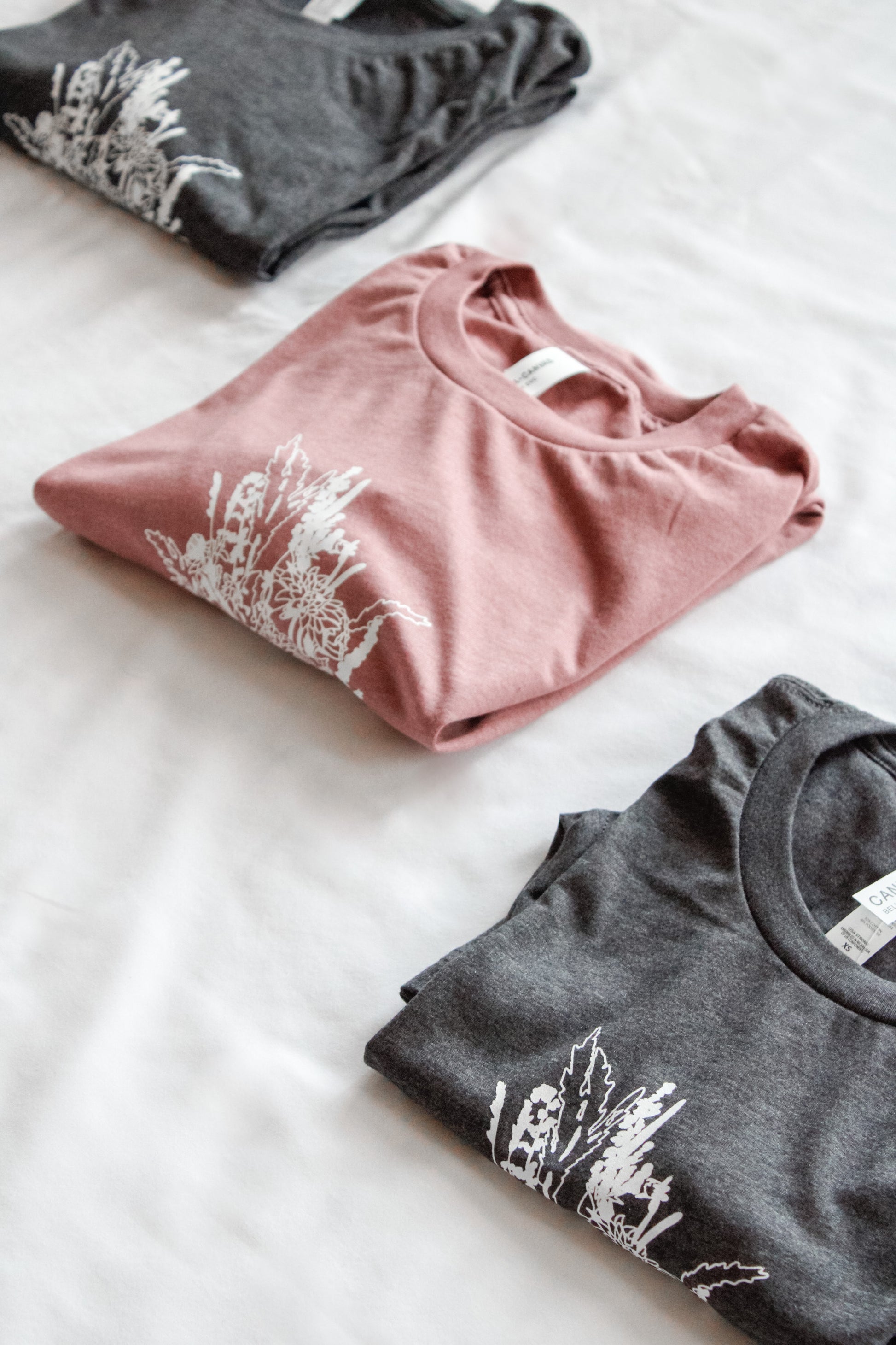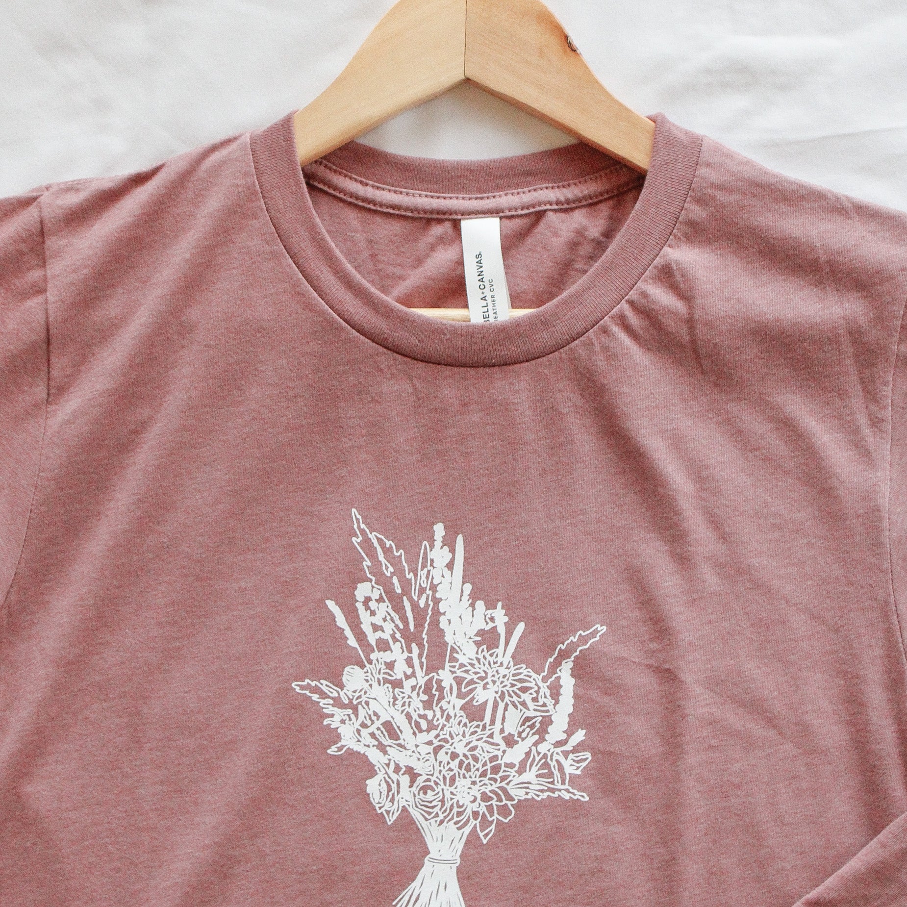 We love the feeling of these blended short-sleeves! Even after washing, they still are soft and gentle on your skin. This pretty mauve crew is printed with permanent white fabric ink that allows you to machine wash and dry it with little to no care instructions! Hassle-free :) We only recommend that you wash it inside out and to prevent any shrinkage, dry on low heat. For size reference, I am 5' 5" and I wear a size Medium.