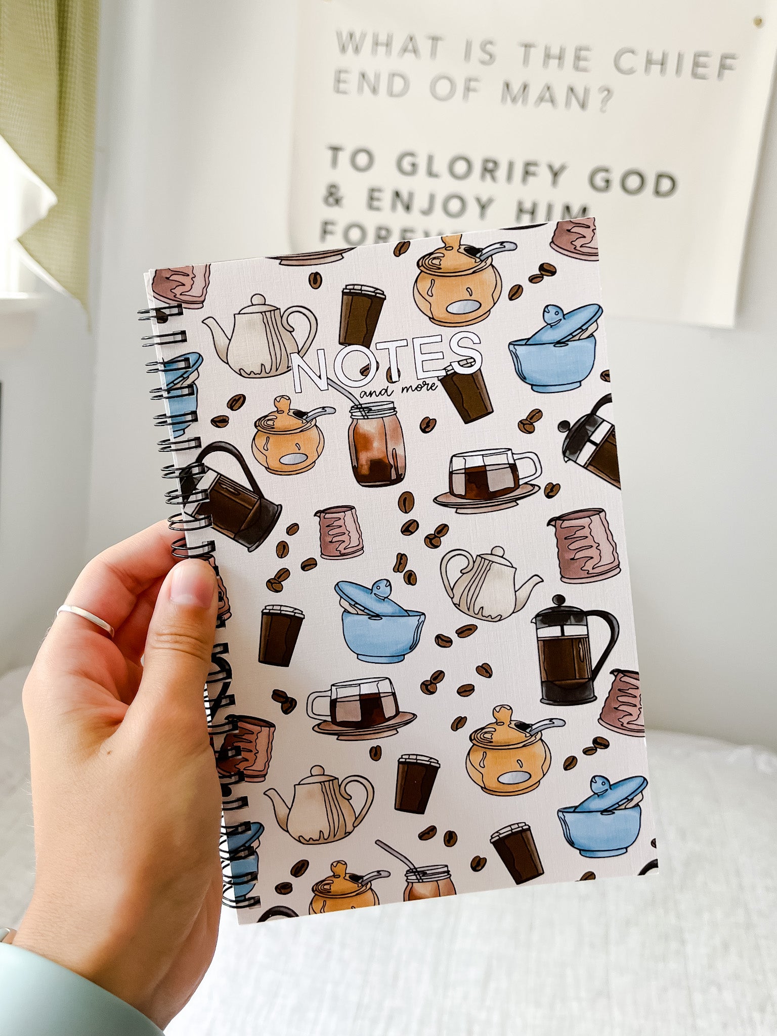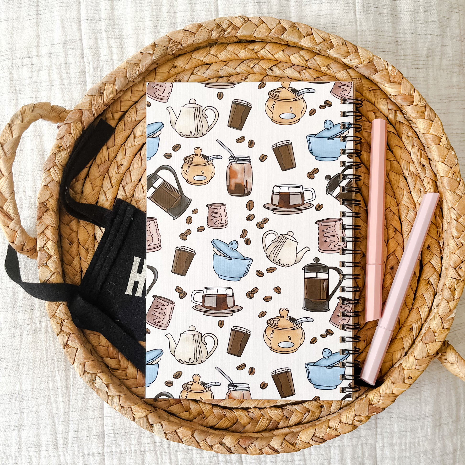 Embrace your love for coffee with the Coffee Notes Notebook. This beautifully designed notebook features a black coil bound cover with a matte finish and 100 lined pages for all your notes and thoughts. Let the coffee illustration on the cover and inside pages inspire your creativity.