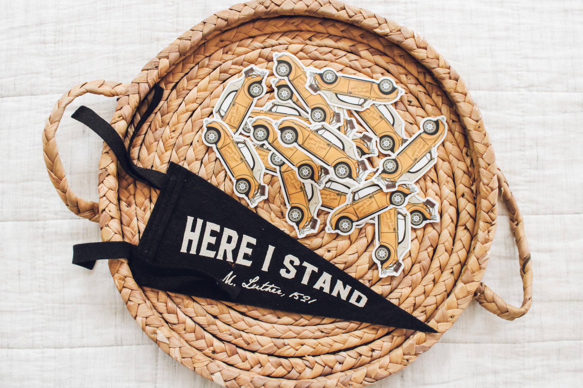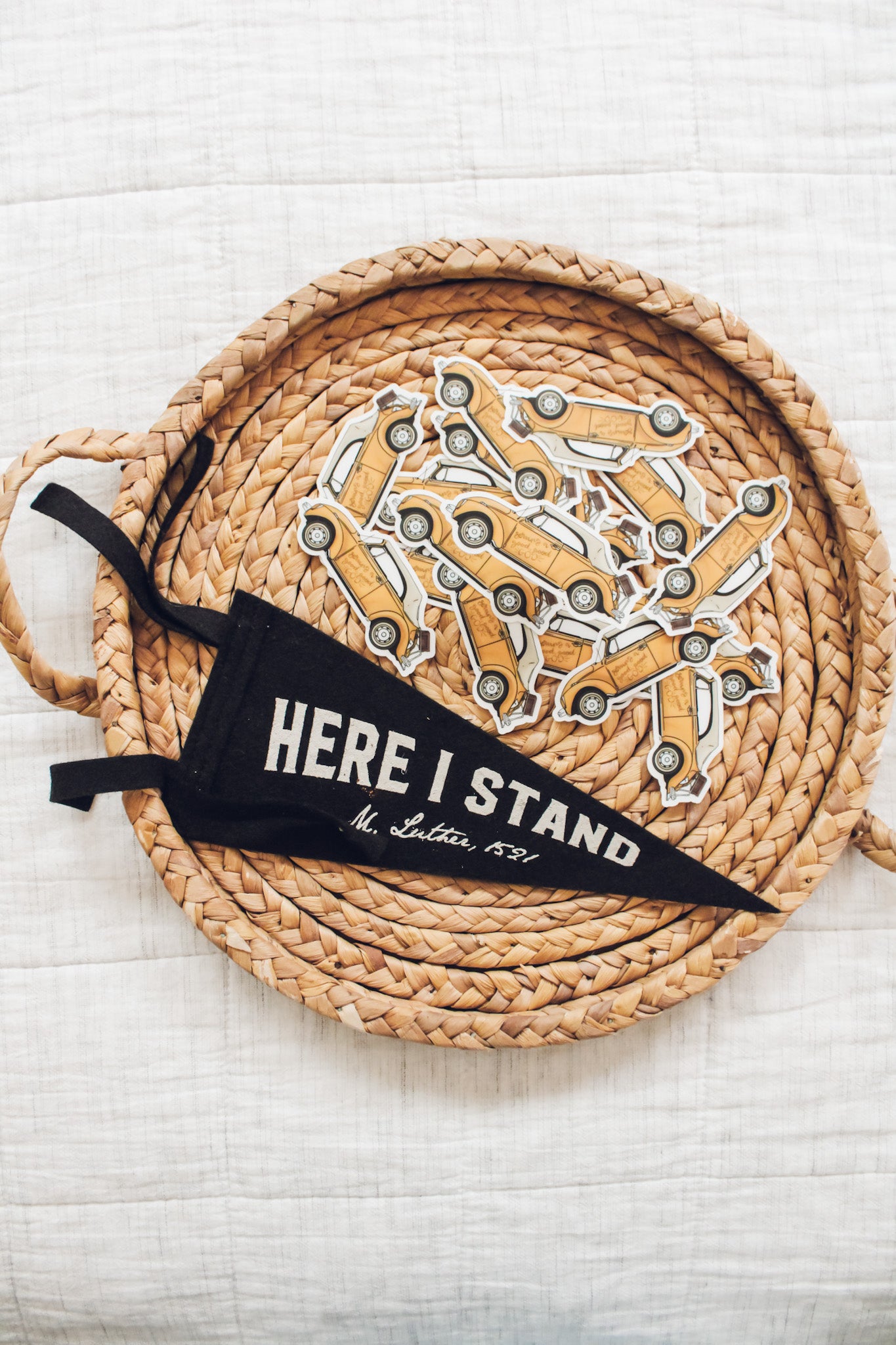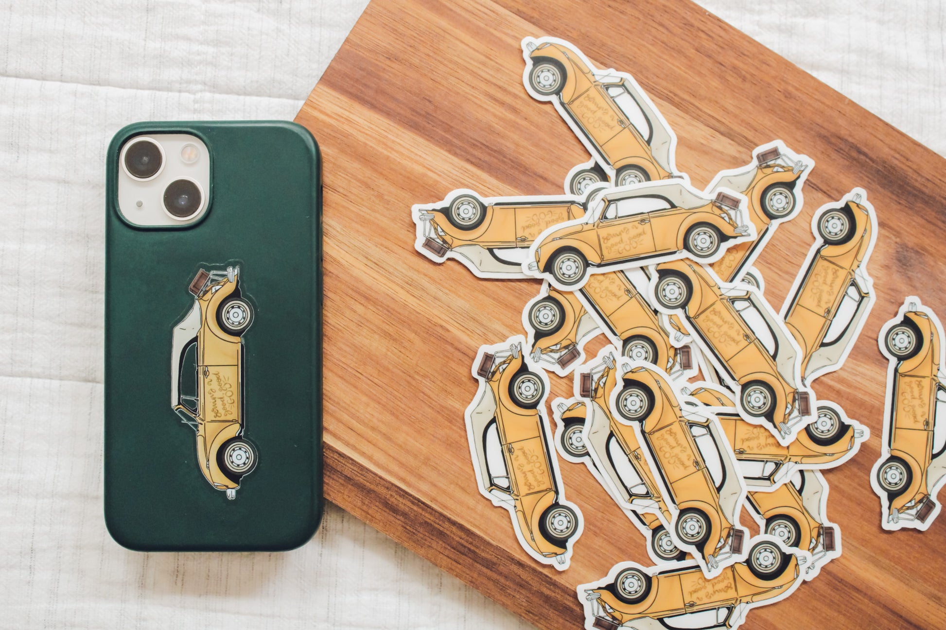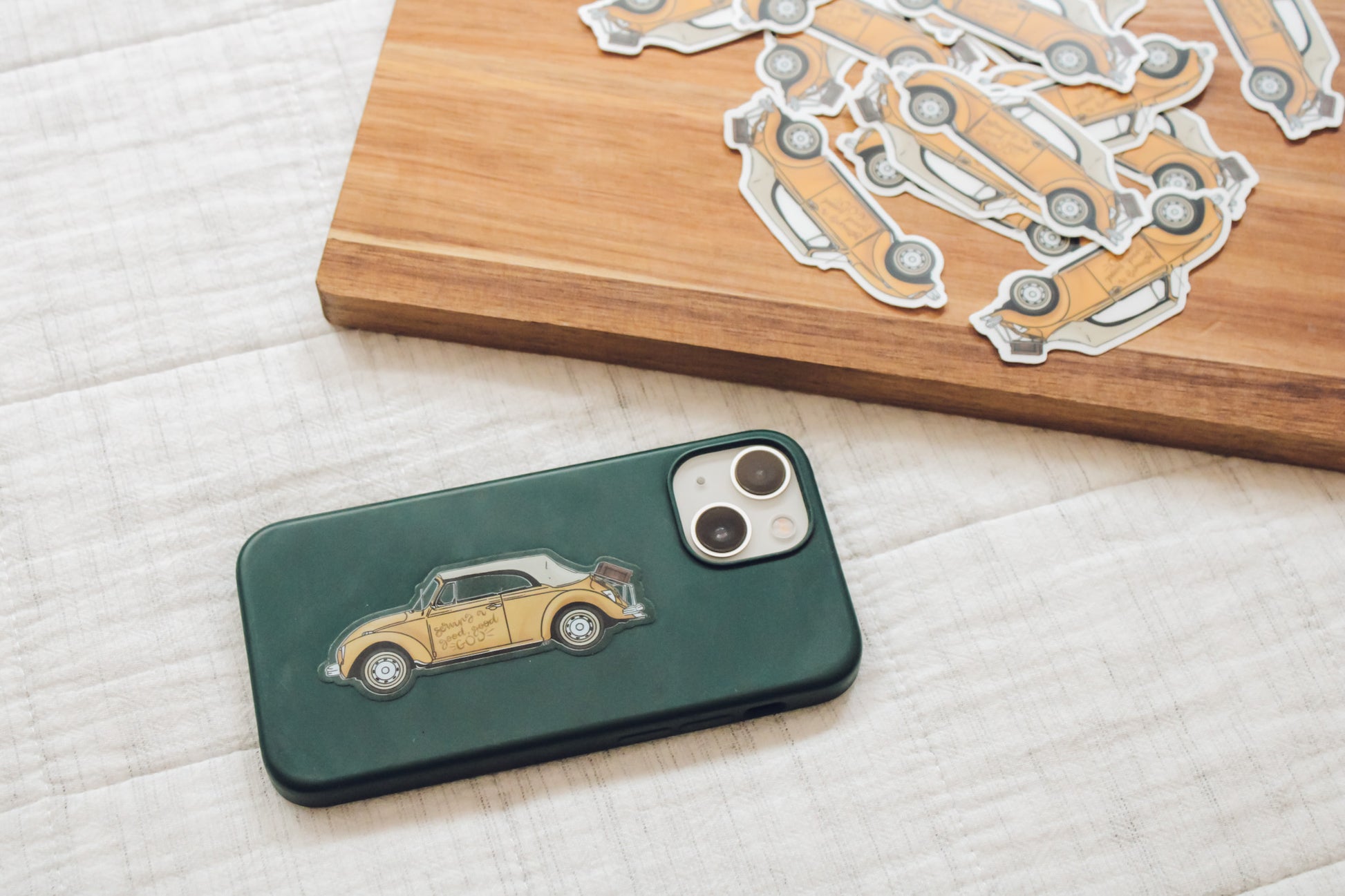Declare your faith everywhere you go with this waterproof, 3" long vinyl sticker featuring a bright yellow VW Bug and the phrase "Serving a good, good God". Perfect for laptops, water bottles, and more, this clear sticker is sure to be a conversation starter.